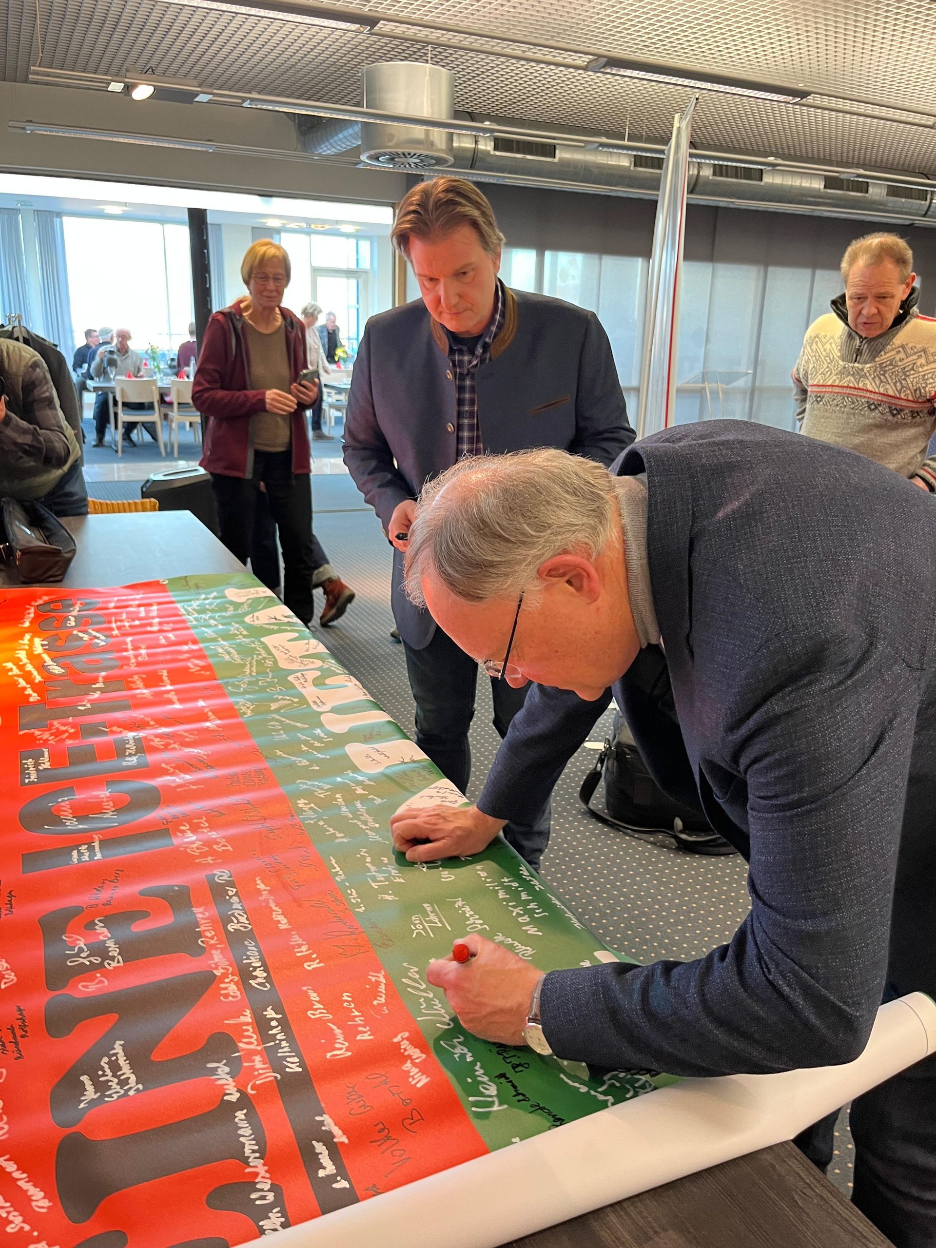 Bei einer Veranstaltung der SPD-Unterbezirk Schaumburg, bei der Stefan Weil Fragen des Publikums beantwortete, ist es uns gelungen, Stefan Weil auf unserem Banner unterschreiben zu lassen.